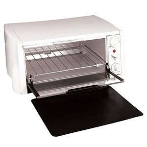 Non-stick silicone toaster oven liner collects messy crumbs, drips and spills, preventing burned-on messes. The oven-safe silicone liner is easy to insert, remove and clean, leaving no build-up that can quickly produce smoke during future usage. A great alternative to scraping and scrubbing burnt residue from the oven's interior. Use and reuse. Dishwasher safe. Silicone, 4 1/4 x 7 1/4".