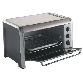 I have been looking for a new toaster oven for a long time now. I spent hours, on various sites including Amazon, reading reviews. I don't recall this toaster oven (pictured above - Oster with brushed stainless steel and manual knobs) on Amazon at the time I looked and could not find one I liked. I ended up finding this one at Target for about $50.00 on sale. I took a chance and bought it. What a deal. I have used toaster ovens for the last 15 years (I don't own a microwave) and this one is my favorite. It is not too big and not too small. A pizza does fit. Many of my regular baking pans fit. The confection feature makes things heat faster. The best part is that it does not get crazy hot like some reviews on other toaster ovens mentions. IT DOES GET VERY VERY HOT, but all toaster ovens do, as far as I know. But this one is not going to melt your painted cabinets - and mine are somewhat close to the oven. I am very happy and think it is a good buy. Note: I don't use it for toast.