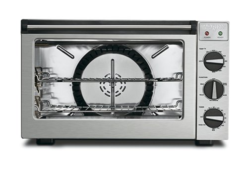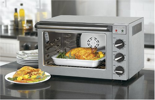 Waring Pro gives new meaning to the term “counter productive” This Professional Convection Oven sits right on the kitchen counter, and it is very productive! Professional quality Bake, Broil, Roast, Convection bake and Rotisserie full-size food items…without going near a regular oven! Waring has been making products for commercial kitchen for over 60 years. Today, Waring Pro brings that expertise right into your kitchen with premium, commercial quality products for home use. The Waring Pro Professional Convection Oven offers 1700 watts and 5 different cooking options and a big .9 cubic foot interior in one sophisticated countertop oven. The design is just plain smart. Three shelf positions and 2 reversible wire racks give food lots of options; and the rotisseries skewers, spit and handgrip offer even more. Three easy rotary dials include one that times anything that’s cooking, for up to 120 minutes. Convenient easy to operate and easy to clean, Waring Pro products make family meals and entertaining simple and delicious. Last but not least, this oven is beautiful. Brushed stainless steel is still everyone’s favorite finish!