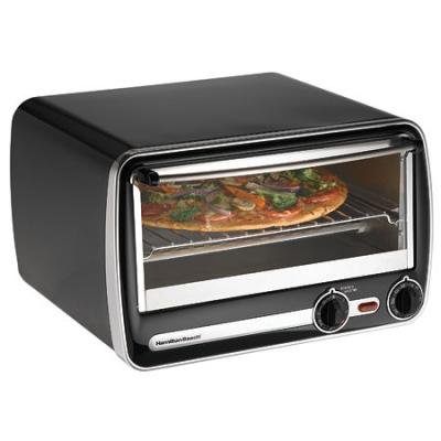 Features: Fits a 12 inch pizza or 6 slices of bread. Space-saving design. 30 minute timer with auto shutoff. Broils/top browns food. Slide-out crumb tray for easy cleanup.