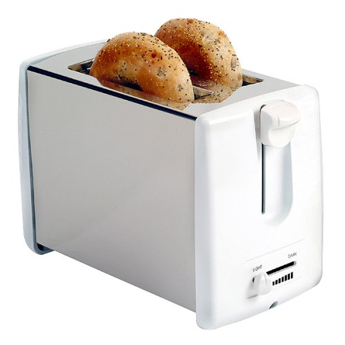 Enjoy perfect toast, bagels and muffins with elite by Maxi-Matic's 2-slice toaster. Features include a beautiful white finish with cool-touch side panels, convenient swing out crumb tray for fast and easy clean up, 2 extra wide slots for toasting bagels and english muffins, sliding variable browning control and 800-watt of power.