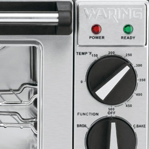 Waring Pro gives new meaning to the term “counter productive” This Professional Convection Oven sits right on the kitchen counter, and it is very productive! Professional quality Bake, Broil, Roast, Convection bake and Rotisserie full-size food items…without going near a regular oven! Waring has been making products for commercial kitchen for over 60 years. Today, Waring Pro brings that expertise right into your kitchen with premium, commercial quality products for home use. The Waring Pro Professional Convection Oven offers 1700 watts and 5 different cooking options and a big .9 cubic foot interior in one sophisticated countertop oven. The design is just plain smart. Three shelf positions and 2 reversible wire racks give food lots of options; and the rotisseries skewers, spit and handgrip offer even more. Three easy rotary dials include one that times anything that’s cooking, for up to 120 minutes. Convenient easy to operate and easy to clean, Waring Pro products make family meals and entertaining simple and delicious. Last but not least, this oven is beautiful. Brushed stainless steel is still everyone’s favorite finish!